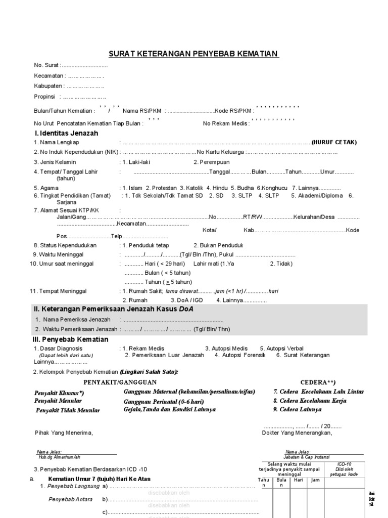 Contoh Surat Keterangan Kematian / Surat Keterangan Penyebab Kematian / Dengan mencari langsung contohnya di google mungkin kita bisa mendapatkan format surat keterangan kematian yang kita butuhkan jika kita menggunakan kode di atas.